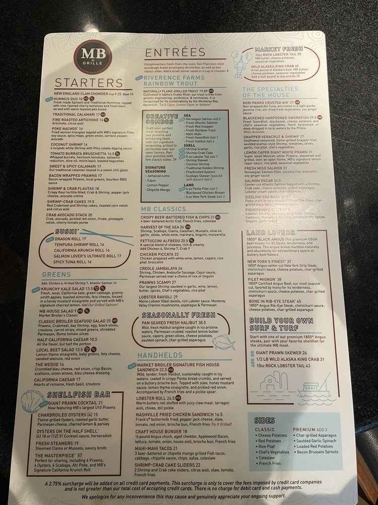 Market Broiler Ontario, a New American - Seafood restaurant located in Ontario, CA, offers a range of amenities including delivery, takeout, vegan and vegetarian options, and wheelchair accessibility. The menu features a variety of starters like Fire Roasted Artichoke and Shellfish Bar options such as Fresh Steamers and Chilled Prawn Cocktail. Customers praise the attentive service and delicious food, with favorites like Poke Nachos and calamari. The restaurant's convenient location in the Ontario Mills mall provides ample parking and a relaxed atmosphere. With a diverse menu and high-quality seafood dishes like Salmon Oscar and Fresh Miso Salmon, Market Broiler Ontario is a must-visit for seafood lovers looking for a memorable dining experience. Overall, the excellent service, flavorful dishes, and inviting ambiance make Market Broiler Ontario a top choice for a casual night out or special occasion.